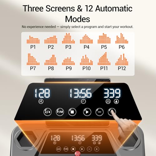 3-Screen Display & Foldable Design: This treadmill with handles features a triple display that shows time, speed, distance, and calories burned in real time and allows you to improve and adjust your workout program at any time with buttons on the display. This foldable treadmill has a built-in water cup holder and tablet/cell phone holder, making it easy for users to place their belongings while working out