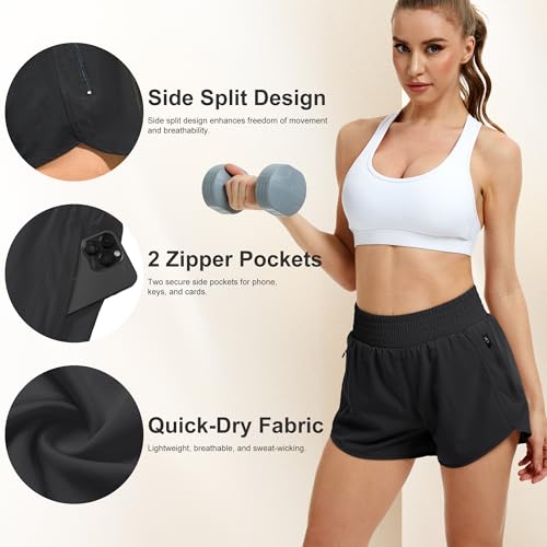 CE’ CERDR Women’s Athletic Workout Short High Waisted Elastic Running Shorts with Pockets for Gym Casual