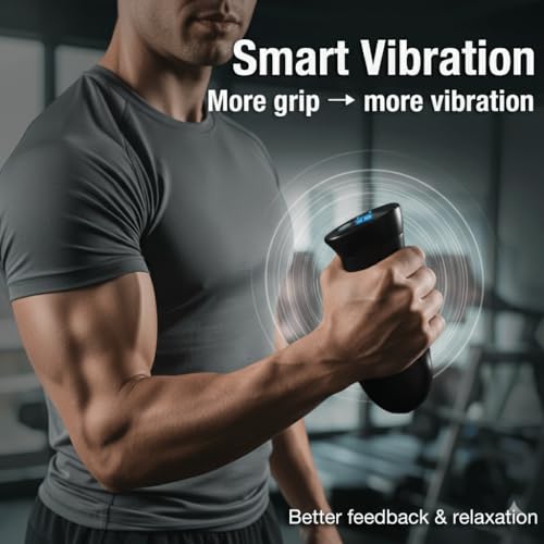 Real-Time 0–440 lb Grip Readout — As a grip strength trainer, it shows accurate lb instantly; in Vibration mode, intensity scales with your squeeze for targeted feedback and recovery. No sound.