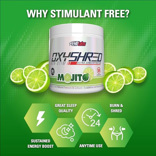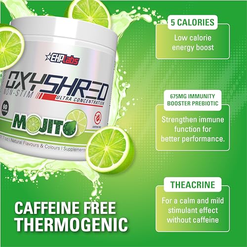 EHP Labs OxyShred Non Stimulant Pre Workout Powder – Stim Free Pre Workout, Caffeine Free Preworkout for Men & Women – Non Stim Preworkout – Sugar Free Energy Powder – Mojito, 60 Servings