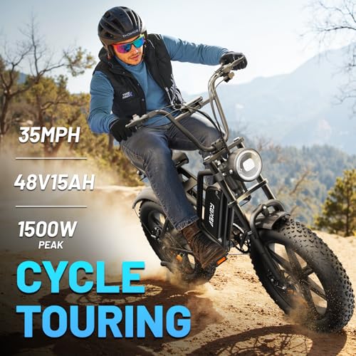 【1500W Peak Motor & 35MPH Top Speed】This electric bike is built for adventure, powered by a robust 750W brushless motor (Peak 1500W) that delivers high torque for seamless climbs up to 35-degree slopes and Top Speed 28-35MPH(depending on the terrain and body weight). Effortlessly tackle mountains, trails, and rugged paths while enjoying smooth, quiet, and energy-efficient performance.