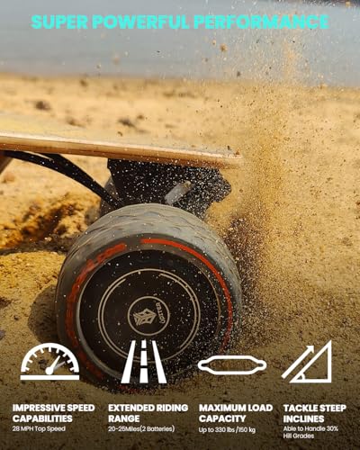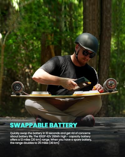 Specification: Electric Skateboard with Remote, Max 600W×2 Hub-Motors, Swappable Battery, Up to 28 MPH, 12–25 Miles Range, 4 Speed Modes, Electric Longboard for Adults & Beginners (Flamo / S3 / Pixel Series)