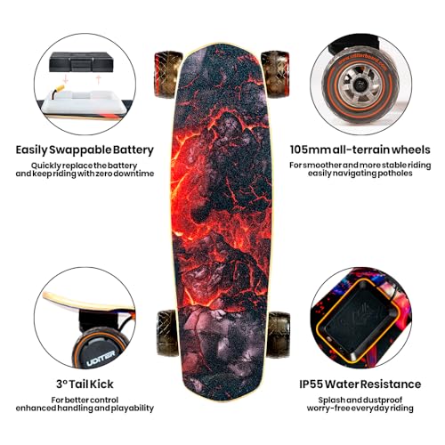 Specification: Electric Skateboard with Remote, Max 600W×2 Hub-Motors, Swappable Battery, Up to 28 MPH, 12–25 Miles Range, 4 Speed Modes, Electric Longboard for Adults & Beginners (Flamo / S3 / Pixel Series)