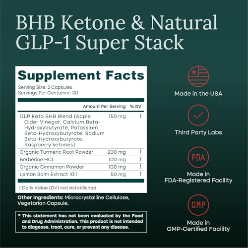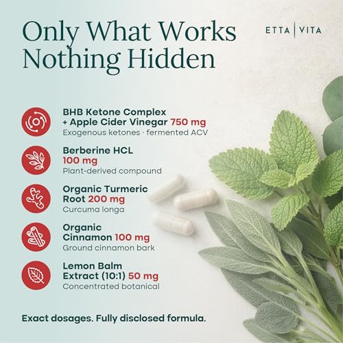 Specification: Etta Vita GLP-1 Supplement for Appetite Support and Metabolic Health with BHB Ketones, Apple Cider Vinegar, Berberine HCL, Turmeric and Cinnamon – Keto