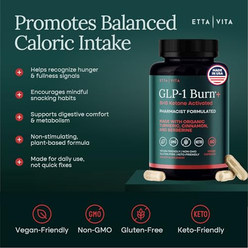 Etta Vita GLP-1 Supplement for Appetite Support and Metabolic Health with BHB Ketones, Apple Cider Vinegar, Berberine HCL, Turmeric and Cinnamon – Keto