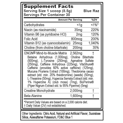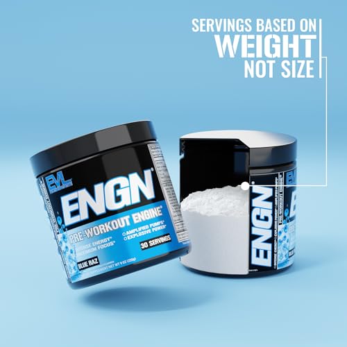 Specification: EVL Intense Pre Workout with Creatine – ENGN Energizing Pre Workout for Men Powder Drink for Lasting Energy Focus and Recovery – with Beta Alanine Caffeine and L Theanine – Blue Raz