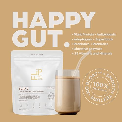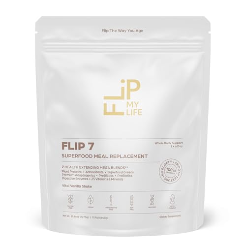 Specification: Flip My Life, Flip 7 Natural SuperFood, Plant-Based Protein, Complete Meal Replacement to Support Healthy Gut, 7 Mega Nutrient Rich Blends all in one to AGE BETTER – Vanilla