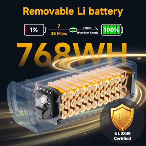 【62 Miles PAS Range, 35 Miles E-Range Commute with 48V/16Ah Battery & Fast Charging】 The 48V removable li battery (UL2849-certified & IPX65 waterproof) delivers up to 35 miles in full-electric mode (62 miles with pedal assist). Fast Removable Battery Charging(fully charged just in 7-8H)—no need to park near an outlet, charge anywhere