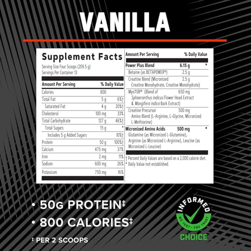 Specification: GNC AMP Mass XXX, Clinically Proven Weight Gainer Protein Powder, Improves Strength and Size, 780 Calories, 50g Protein, Micronized Amino Acids, Creatine, Betaine, Vanilla, 13 Servings, 6 Pounds