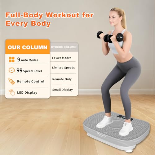 Simple Operation & Compact Storage — A remote control and LED screen display time and speed for easy monitoring. The anti-slip surface and durable ABS housing provide stability, longevity, and motor protection. Compact and portable, this vibration platform fits perfectly in the home, office, or any small space.