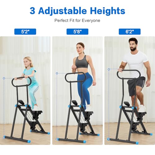 【Stable Triangular Structure】This folding vertical climber machine is made of sturdy steel that protects against corrosion. The frame is designed with a triangular structure to ensure solid balance and can support a maximum weight of 300 pounds