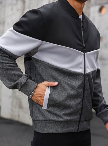 HYPESTFIT Mens Lightweight Jacket Casual Bomber Jacket Color Block Varsity Coat