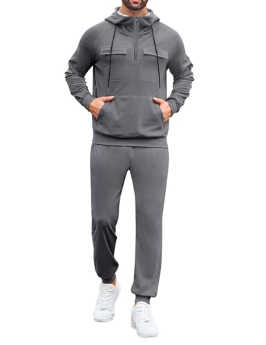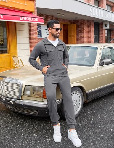 LecGee Men’s Fall 2 Pieces Tracksuit Set Hoodie Long Sleeve 1/4 Zip Sweatsuits Casual Outfit With Kangaroo Pouch Pocket