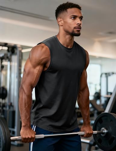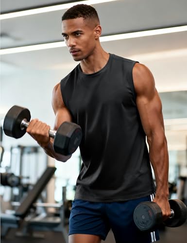 MAGCOMSEN Men’s UPF 80+ Tank Top Sleeveless Muscle Shirts Workout Gym Cut Off Shirt Moisture Wicking Polyester Top for Summer