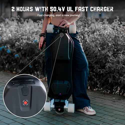[Ultra-High Power] The MEEPO voyager electric skateboard has a 2800W*2 high torque BLDC motor that enables it to travel at a top speed of 31 MPH and easily ascend inclination slopes of 46%. The 544.3Wh Molicel battery gives the voyager electric longboard a range of 30 miles after a full charge takes 3 hours using a 4.5A charger. This longboard will provide you with plenty of amusement.