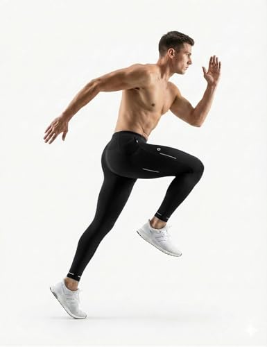 Specification: Men’s Running Tights with 6 Pockets Compression Winter Running Pants for Men Reflective Thermal Leggings for Jogging