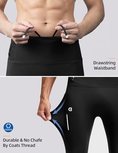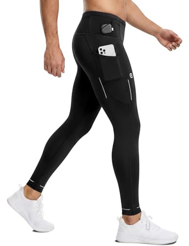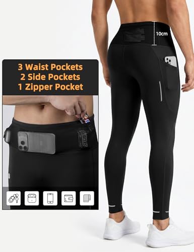 Men’s Running Tights with 6 Pockets Compression Winter Running Pants for Men Reflective Thermal Leggings for Jogging