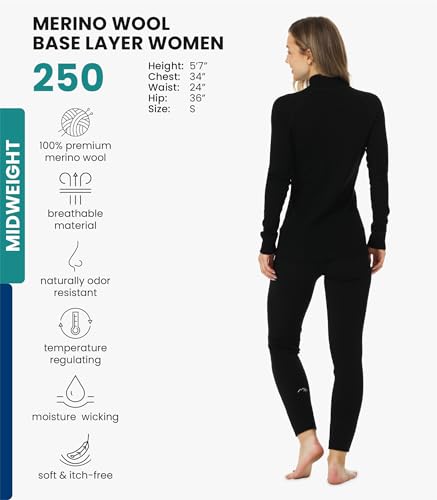 Specification: Merino.tech Women’s Merino Wool Base Layer Set – Zip-Up Heavyweight, Midweight Thermal Top & Bottom