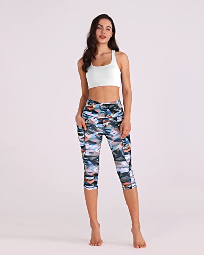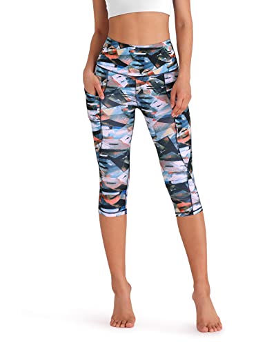 ODODOS Women’s High Waisted Yoga Capris with Pockets, Tummy Control Non See Through Workout Athletic Running Capri Leggings