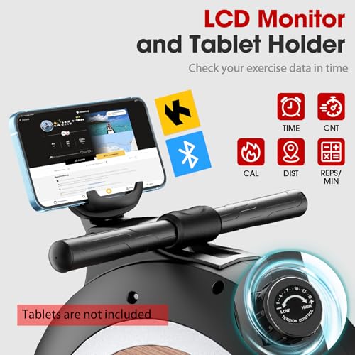 [Real-Time Tracking with Bluetooth] Sync this magnetic rowing machine with the KINOMAP apps via Bluetooth. The LCD on your rower machine tracks time, calories, stroke count, scan mode, and distance, enhancing your fitness experience with diverse activities.