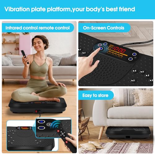 ✅Easy to Use and Store—The slim vibrating plate may also be operated the usage of the remote keep watch over or via the LED touch screen. The display shows you the time and speed, giving you a clear overview of your workout. The non-slip coated design and have an effect on-resistant ABS housing ensure longevity and give protection to the motor. Compact and space-saving, you’ll exercise at home, in the office, or in other places at any time without being restricted by space