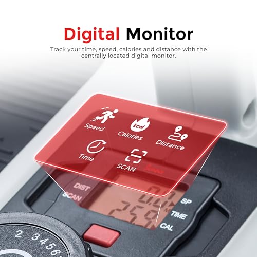 Digital Performance Monitor with Scan Function: Centrally located LCD display tracks essential workout metrics including time, speed, distance, and calories burned in real-time; scan function automatically cycles through all variables; monitor progress without smartphone requirement for straightforward fitness tracking