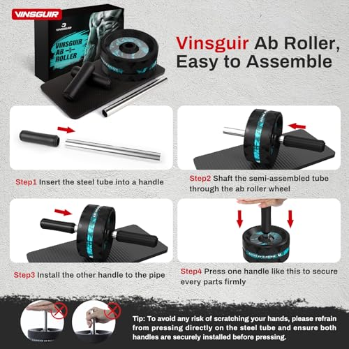 VINSGUIR Ab Roller Wheel, Abs & Core Workout Equipment for Home Gym with Knee Pad Accessories, Abdominal Wheel for Full-body Strength Training