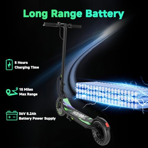 ✅【Long-Lasting Battery】This e scooter has 19 miles max long range on a single 4-5 hours fast charge, making it ideal for everyday commutes, school routes, and short-distance trips without frequent recharging.