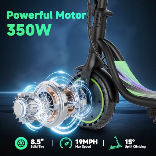 VOLPAM Electric Scooter Adult, 19 MPH & 15 Miles Range, 350W Motor, 8.5″ Solid Tires, Lightwight Foldable E Scooter for Adults & Teens, with App Control, Curise Control, Dual Braking
