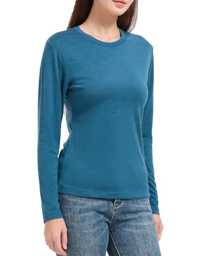 Women’s 100% Merino Wool Base Layer Top, Merino Wool Long Sleeve Undershirt, Wool Thermal Shirt