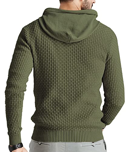 Zaitun Mens Hooded Sweatshirt Long Sleeve Solid Knitted Hoodie Pullover Sweater