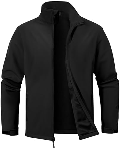 ZITY Men’s Softshell Jacket Fleece Lined Lightweight Waterproof Rain Jacket Zip Up Soft Shell Windproof Windbreaker